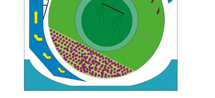 The slice-chip moved continuously along complex tracks in the screen cylinder,which is tightly sealed and clean.According to the parameters and requirements of process flow,the machine automatically spray the coating medium evenly onto the surface of slice-chip through the automization process of praying gun, the process is controlled by MCU(the syrup medium apply drip process). At the same time, the cylinder hot cleaning air which penetrate the slice-bed through the air cabiner, and is exhausted by the suction device through the screen mesh on the bottom of the cylinder so the slicechip film dry quickly and evenly and form a film and soomth surface coat.